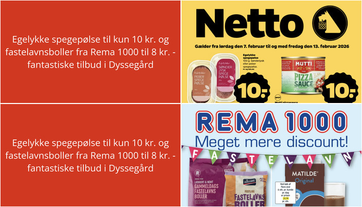 Vi har kigget på denne uges tilbudsaviser for dagligvarebutikker i Dyssegård og fundet nogle supergode tilbud. Her er et udpluk af de bedste tilbud fra Netto og Rema 1000.